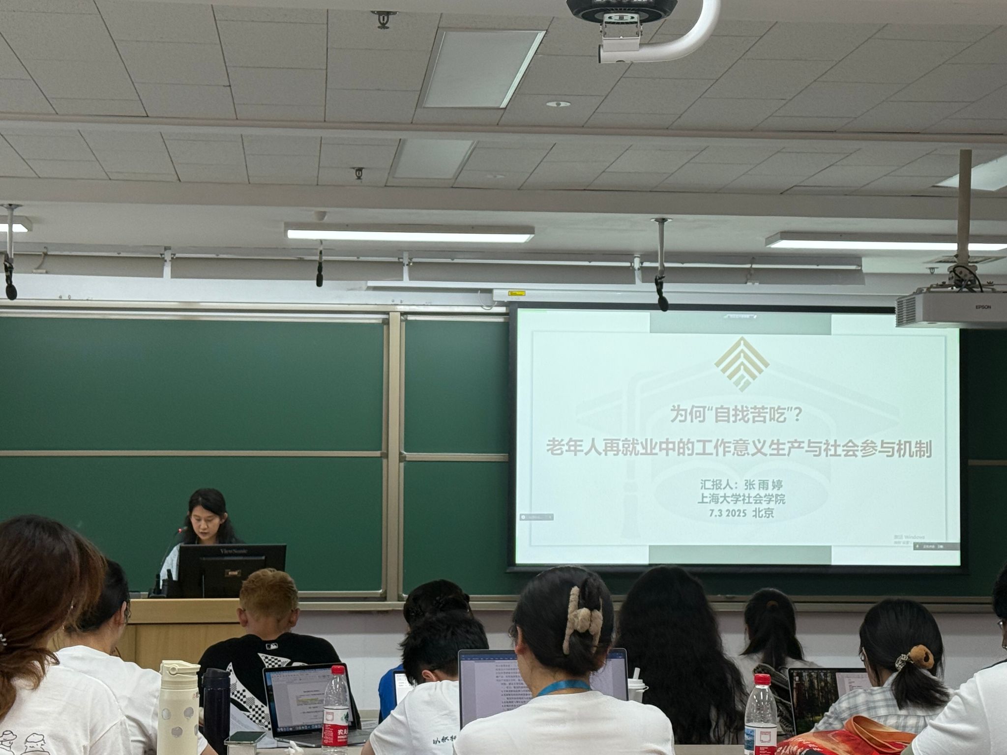 2025年7月3日,北京大学第十届老龄健康博士生论坛在理科教学楼顺利召开。本次论坛聚焦老龄社会背景下的健康、社会、产业等议题,来自多所高校与研究机构的青年学者齐聚一堂,分享研究成果。我院2023级硕士研究生张雨婷在“分论坛四:产业与环境发展”中作题为《为何“自找苦吃”?老年人再就业的工作意义生产与社会参与机制》的论文汇报。该研究以苏南地区某村为田野地点,通过常人方法学分析16位老年人的访谈资料,从主观动因与客观条件两个维度剖析高龄老人再就业现象。文章指出,老年人重返劳动岗位不仅是“经济所需”“精神不闲”与“社交联结”的综合结果,也受到健康状况、家庭协商与村庄结构机会等多重因素的影响。在劳动实践中,老人们通过社会网络、组织招募或岗位延续等路径重返劳动场域,在非正式的劳动关系中建构自我价值与社会身份,体现出独特的社会参与机制。因此,应跳出“政策响应者”的单一视角,重视老年人作为“意义建构者”的能动实践,为理解高龄劳动提供微观经验维度。在讨论环节,《人口研究》副主编陈佳鞠老师与北京大学人口研究所助理教授韩晴老师分别就“意义生产”的理论路径与田野案例的处理方式提出了中肯的建议,对论文的进一步深化提供了重要思路。