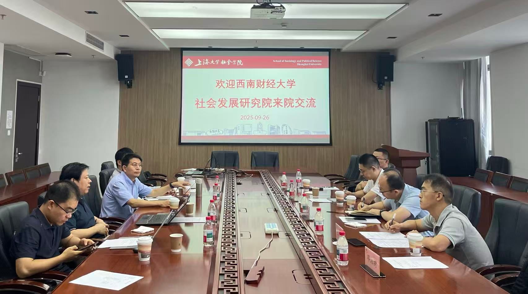 2025 年 9 月 26 日下午,西南财经大学社会发展研究院来我院开展交流。西南财经大学社会发展研究院院长杨海洋教授,社会学研究所所长胡康教授、经济社会研究所所长谭远发教授,院长助理何龙韬副教授,张云亮副教授参会。全讯600cc大白菜官网人文社科处处长黄晓春教授,600全讯白菜网党委书记杨锃教授、600全讯白菜网副院长盛智明教授、社会学系副主任李朔严副教授参会。