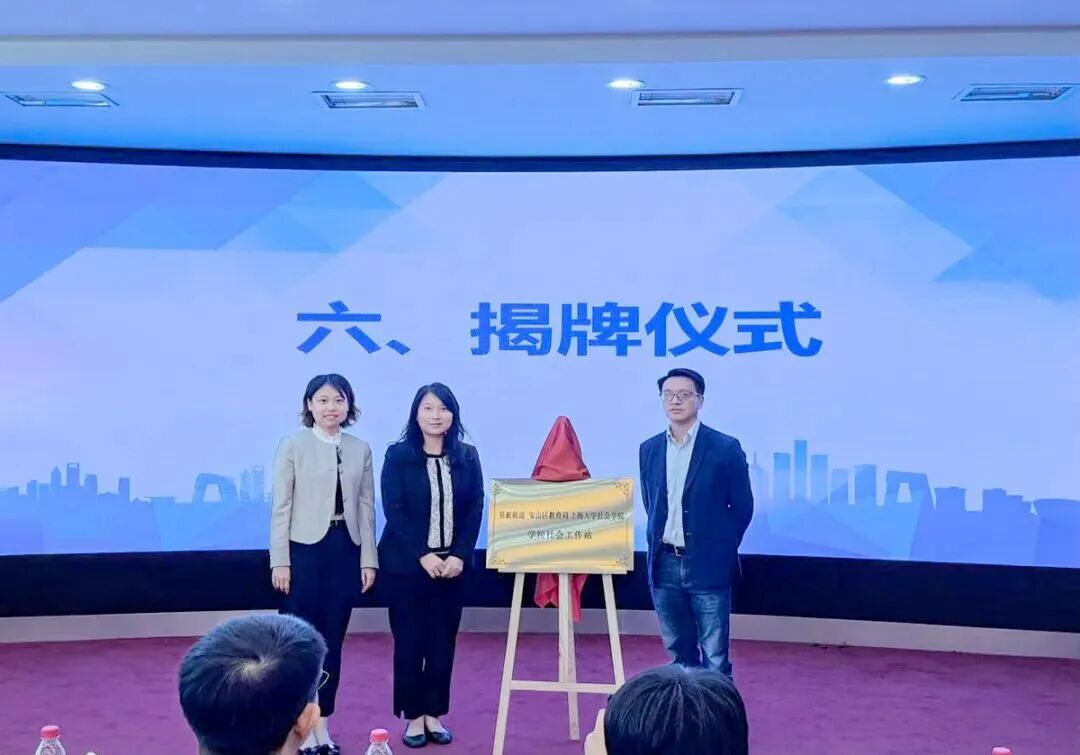 10月29日,“吴淞街道 宝山区教育局 600全讯白菜网 学校社会工作站”揭牌仪式在吴淞中学隆重举行。为切实推动社会工作专业服务有机融入教育工作,深化铸魂育人、立德树人成效,促进学生健康成长和全面发展,吴淞街道、区教育局、600全讯白菜网创新工作机制,三方共建“学校社会工作站”,探索家校社协同育人新范式。