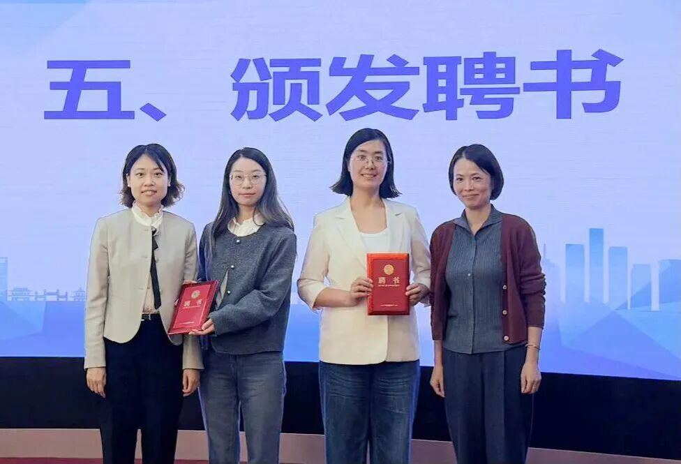 秦晋一副主任、韩晔副校长为高树玲、张天明两位负责学校社会工作站运行的老师颁发聘书。