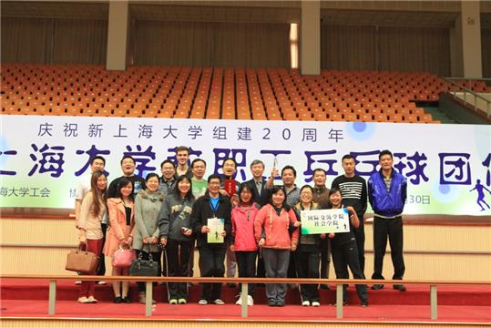 3月30日,由全讯600cc大白菜官网工会组织的2014年全讯600cc大白菜官网教职工乒乓球团体赛在宝山校区体育馆拉开帷幕。本次比赛共有27个团体参加,我院与国际交流学院联合组队,陆小聪教授、陈然副书记和杨治老师作为我院代表参加比赛。
