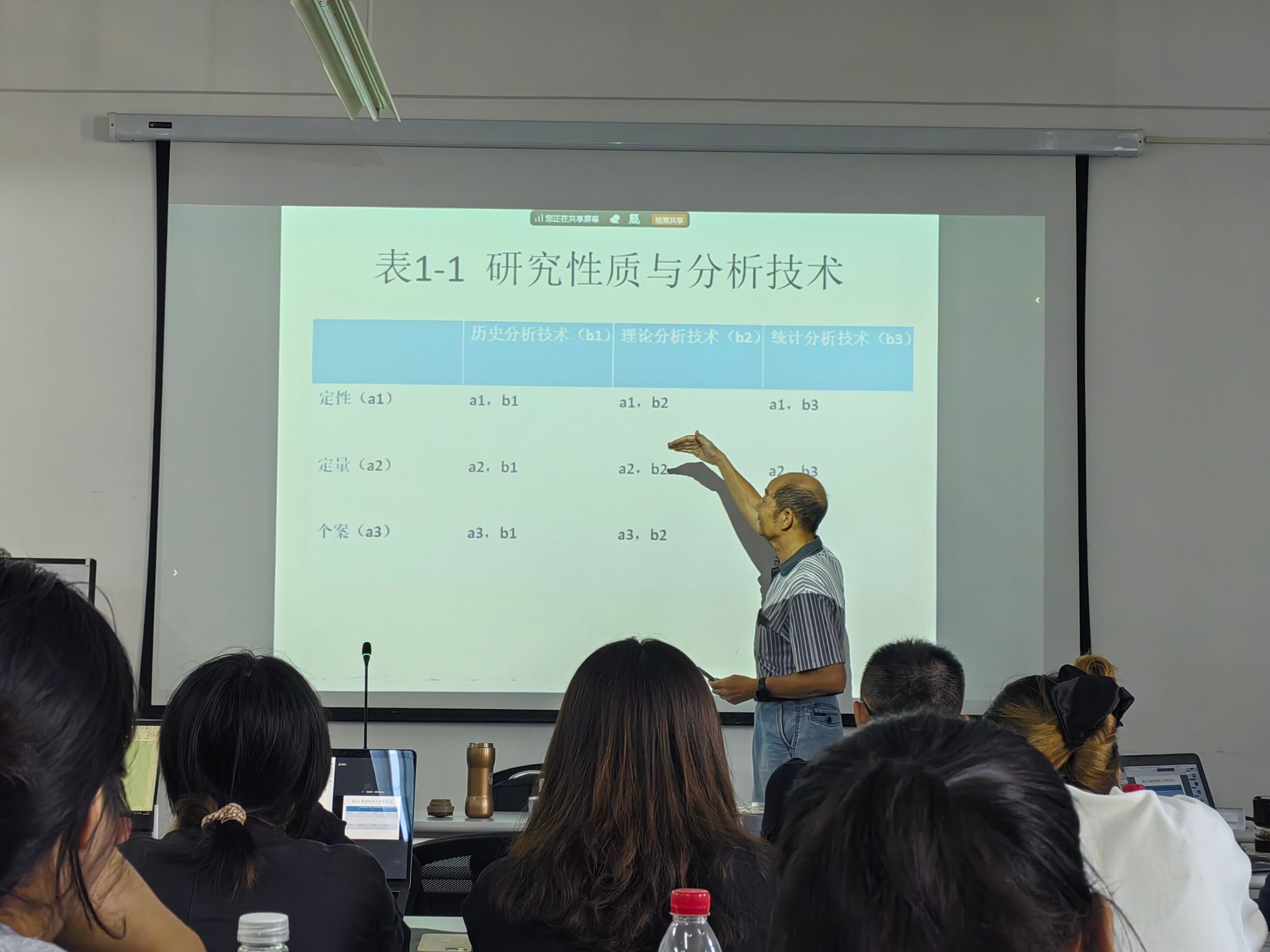 在10月12日的讲座中,刘教授带领大家回溯了理论建模在社会学的发展背景。以韦伯学术立场为例,指出其通过建构理想型来进行理论模型的尝试,同时点出当前社会学因理论建模不足而导致的“有词语无概念”“有概念无命题”“有命题无条件”问题。他还从研究性质与分析技术两个维度出发,对社会研究中存在的不同类型的研究进行了比较分析,指出“以是否利用数学工具来划分定性研究与定量研究”是存在问题的。当今中西方社会学发展共同面临着理论建模被忽视的问题,因此应重视理论建模,致力于建立兼具简化性与相对精确性的理论模型。