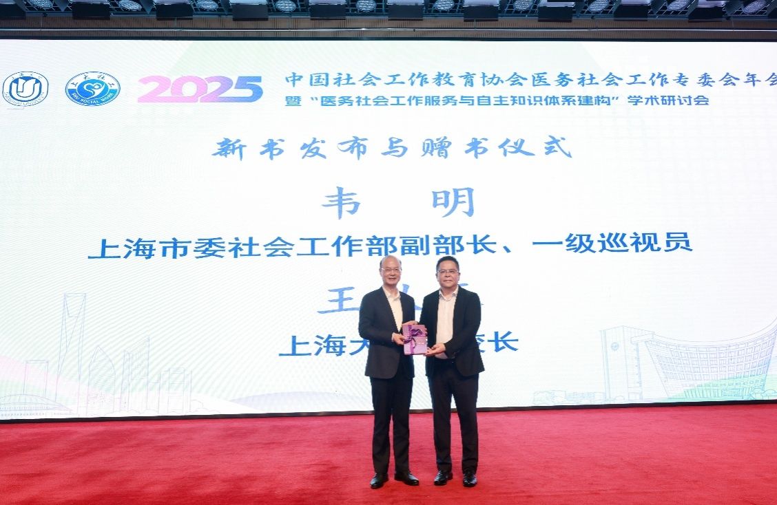 本次会议的亮点之一是新书《安宁疗护社会工作:评估与干预》发布与赠书仪式。该书由600全讯白菜网社会工作系主任程明明副教授撰写,系统阐述了安宁疗护社会工作的评估方法与干预策略,是我国医务社会工作自主知识体系建构的重要成果。中共上海市委社会工作部副部长,一级巡视员韦明与全讯600cc大白菜官网党委常委、副校长王从春共同完成新书赠阅仪式,象征学界与政府部门协同推动知识传播与事业发展的坚定决心。
