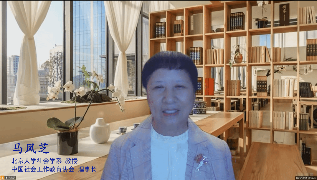 中国社会工作教育协会会长马凤芝教授在在线致辞中回顾了我国医务社会工作从实践探索到体系化发展的历程,指出当前正处于从“服务实践”向“知识建构”转型的关键阶段。她呼吁学界与实务界共同推进理论创新、标准制定与人才培养,构建具有中国特色的医务社会工作知识体系。